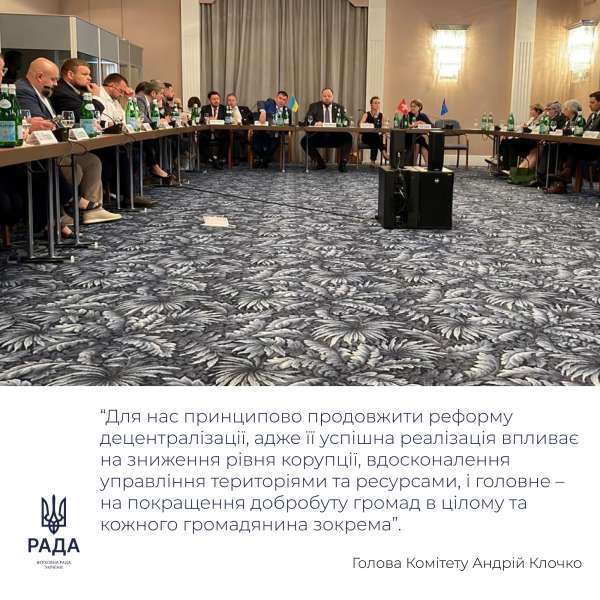 Очільник Комітету зазначив, що план заходів з післявоєнного відновлення та розвитку України включає і напрям «Місцеве самоврядування»: