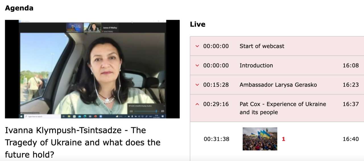 Іванна Климпуш-Цинцадзе подякувала Ірландії, яка працювала з іншими державами, пояснюючи, чому важливо надати Україні статус кандидата на вступ до ЄС: «Ми, українці, борючись проти ворога, вдячні, що наша мрія про майбутнє була почута вільними націями… Вірю, що це є променем світла для українського народу, і що після перемоги ми зможемо трансформувати свою країну відповідно до тих принципів і цінностей, за які боремось». Але перед цим, за словами голови Комітету, треба зробити все, щоби імперію зла було переможено. Її очільник прорахувався, коли планував свій бліцкріґ в Україні, він також прорахувався, бо не очікував такої єдності від західного світу довкола України. «Я сподіваюся, що, незважаючи на нові виклики, на інформаційні атаки росії, на економічні та енергетичні труднощі, незважаючи на інфляцію, єдність європейських суспільств буде з Україною. Бо ми боремося, зрештою, не лише за свої цінності, а за цінності всіх, хто у них вірить», - сказала Іванна Климпуш-Цинцадзе. Вона також висловила сподівання, що нинішня війна в Україні - остання, яку веде російська імперія, і що після війни ця імперія перестане існувати.