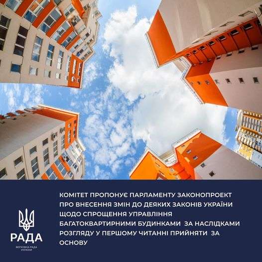 Комітет пропонує Парламенту законопроект про внесення змін до деяких законів України щодо спрощення управління багатоквартирними будинками (реєстр. №7029) за наслідками розгляду у першому читанні прийняти за основу.