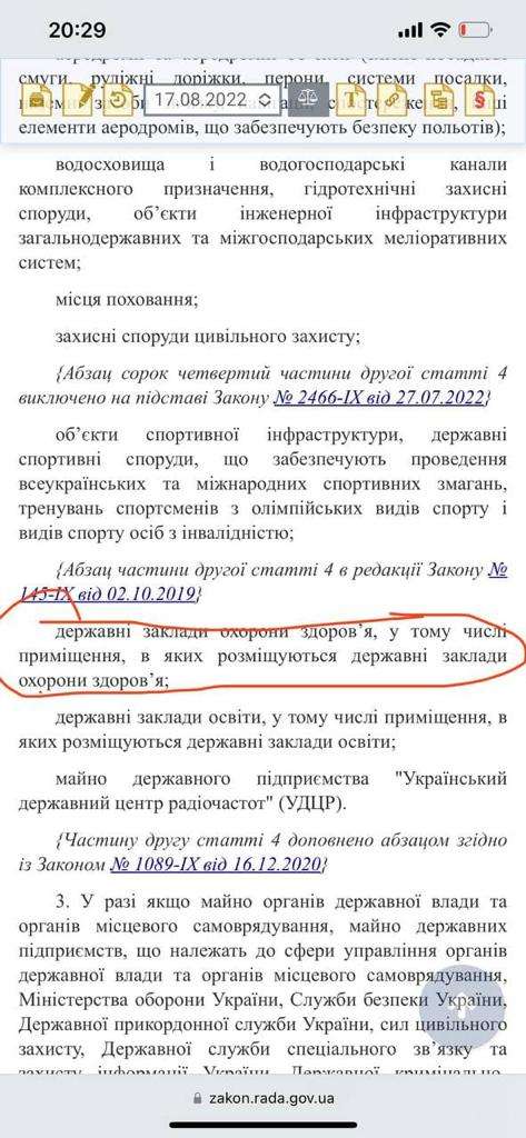 Якщо раптом ви десь про це почули, знайте - інформація не відповідає дійсності. Для доказу прикладаю скрін із Закону, де чітко видно - заборона на приватизацію лікарень залишається.