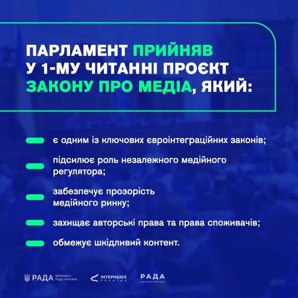 Законопроектом також пропонується уточнити порядок розповсюдження мовниками інформації про події значного суспільного інтересу, спростити умови реєстрації друкованих видань: встановити, що вони підлягають обов’язковій реєстрації лише на період військової агресії, посилити повноваження регулятора у частині накладання санкцій на суб’єктів у сфері медіа, конкретизувати обмеження у сфері медіа, пов’язані зі збройною агресією: уточнити перелік суб’єктів, які не можуть бути суб'єктами у сфері медіа в Україні, критерії забороненого контенту тощо.