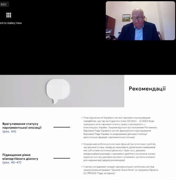 Перший заступник Голови Верховної Ради України Олександр Корнієнко зазначив, що більшість Рекомендацій Місії імплементовано. За його словами, проведена фундаментальна робота у 2010-их роках, але зараз ми рухаємося до середини 2020-их. «Потрібно думати як державникам, базуючись на закладеному фундаменті, думати на наступне скликання», - сказав Олександр Корнієнко і наголосив, що певні речі засадничі вже виконані, але потрібно рухатися вперед.