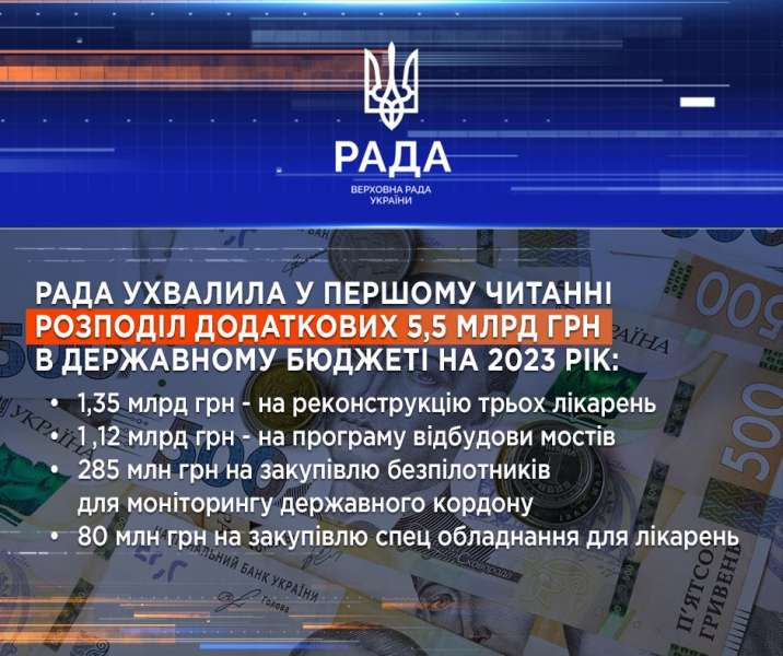 Ініціаторка законопроекту Голова Комітету з питань бюджету Роксолана Підласа повідомила, що проект закону серед іншого передбачає розподіл додаткових 5,5 млрд грн, які надійдуть до державного бюджету у вигляді грантів, кредитних коштів та повернення позик.