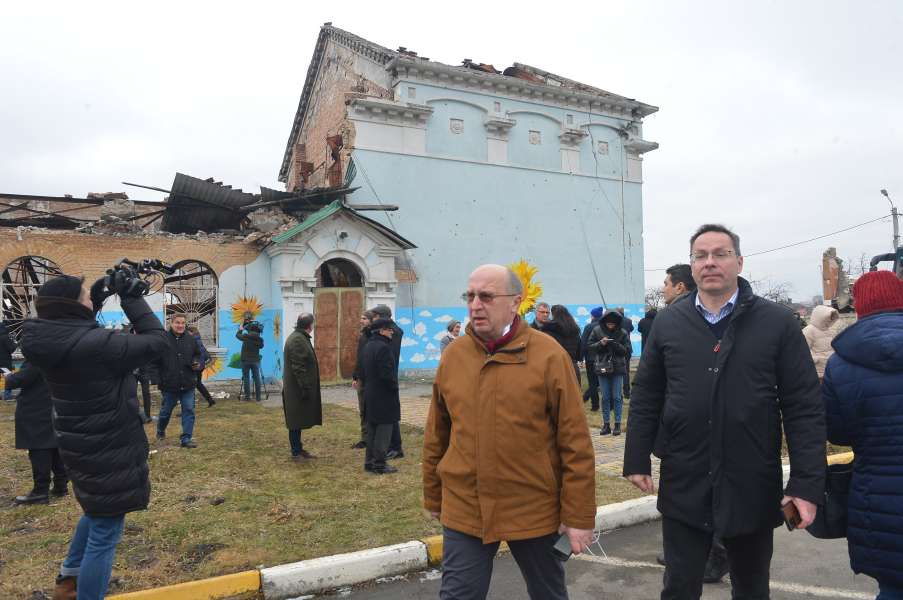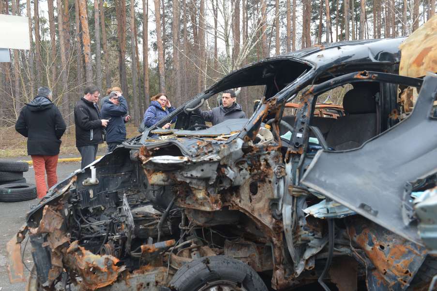 Зокрема, понад 50 європейських парламентаріїв відвідали місто Ірпінь, де оглянули руйнування у житловому комплексі «Ірпінські Липки», Будинок культури, графіті британського вуличного художника Бенксі та «цвинтар» знищених росіянами автомобілів.