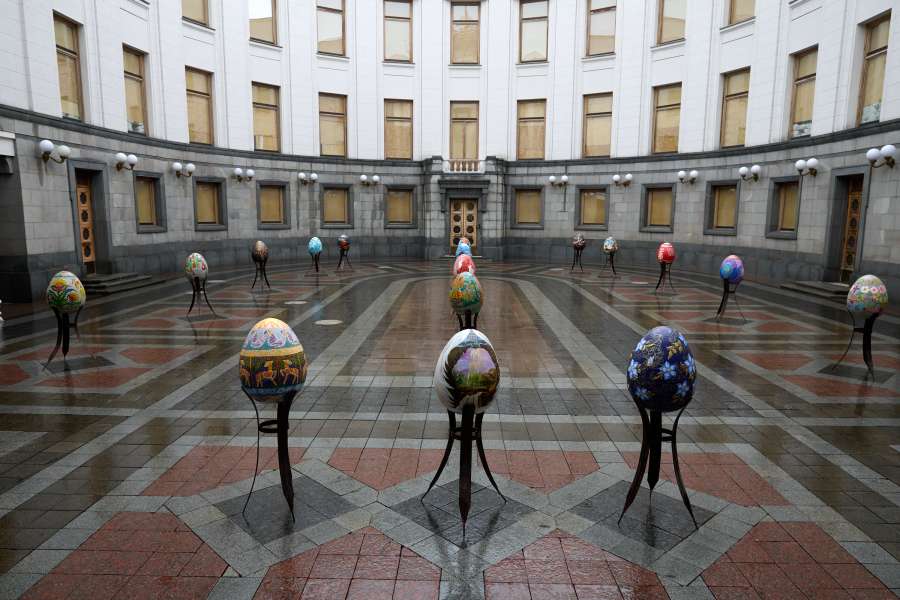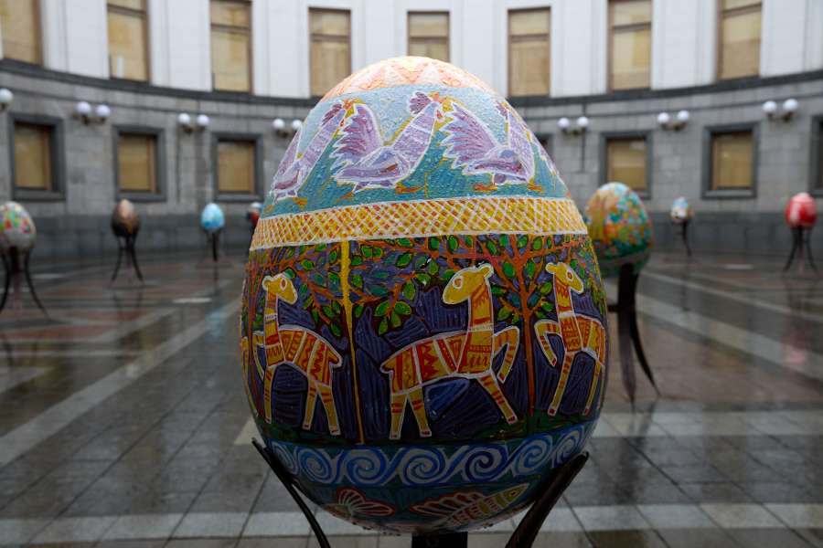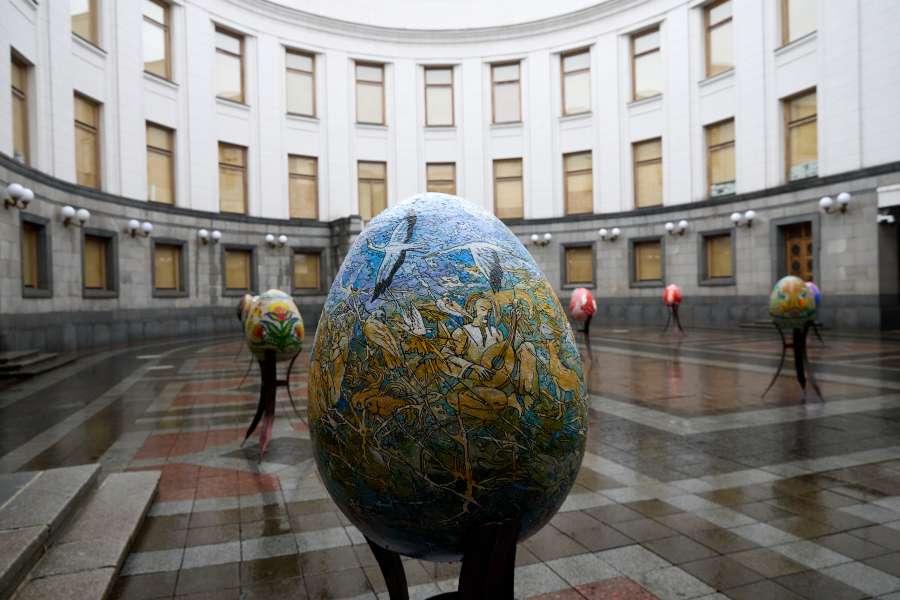 У внутрішньому дворику Верховної Ради України відкрилася виставка врятованої частини унікальної колекції писанок, що демонструвалася у зруйнованому окупантами «Добропарку» у Макарівському районі на Київщині.