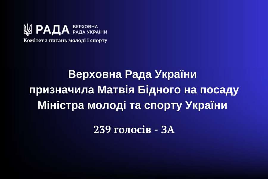 Комітет прийняв рішення: рекомендувати Верховній Раді України призначити Матвія Бідного на посаду Міністра молоді та спорту України.