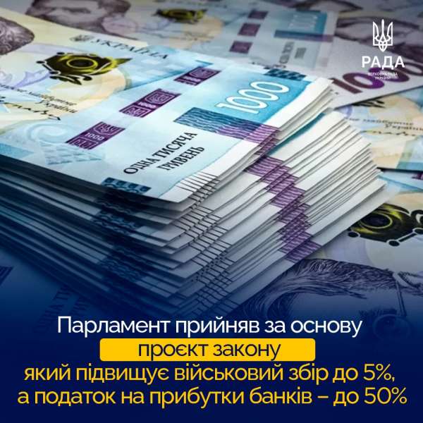 «Передбачається підвищення військового збору до 5%, впровадження військового збору для фізичних осіб-підприємців, збільшення податку на прибутки банків до 50% і впровадження податків на прибутки для фінустанов. До другого читання документ ще може змінитися. Це залежить від позиції народних депутатів, від кількості голосів, що можуть бути в залі», - зазначила політикиня.