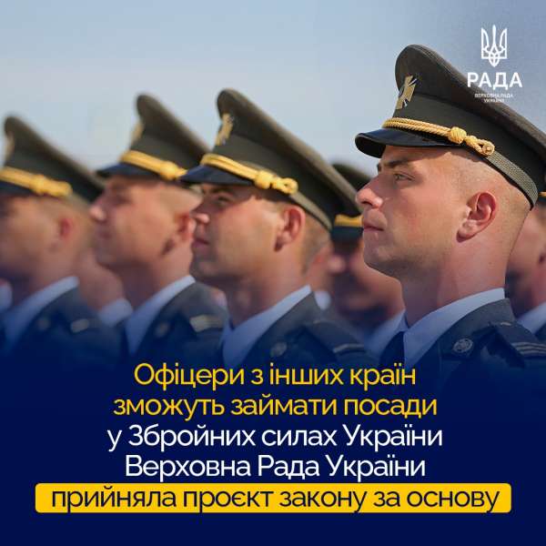 «У нас зараз складна ситуація саме офіцерським кадровим складом. Водночас у нас є військовослужбовці з інших країн, що проходили службу й мають офіцерські звання. Вони готові долучитися до лав ЗСУ. У нас є іноземний легіон, у якому сьогодні офіцери країн Заходу, партнерських держав, проходять службу на рівні солдатів або сержантів. Ми хочемо це врегулювати, тому ухвалений законопроєкт покликаний дозволити нам ставити на офіцерські посади колишніх офіцерів з інших країн», - зазначив політик.
