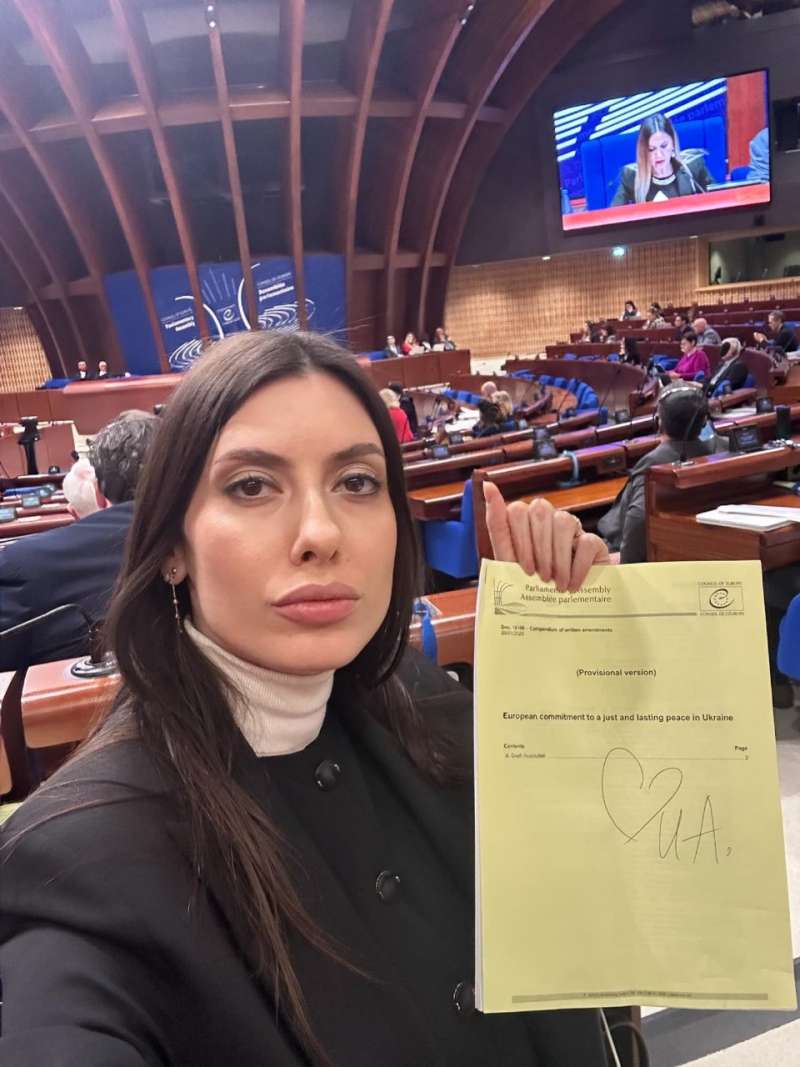 «В ухваленому документі йдеться про тривалий справедливий мир і європейські зобов’язання досягнути цього миру для України. Основна увага фокусувалася на додаткових санкціях проти рф. Також у резолюції зазначено, що путін є терористом і має бути притягнутий до відповідальності за злочини, вчинені проти цивільного населення. ПАРЄ стала першою міжнародною організацією, яка це визнає. Крім того, у резолюції наголошується, що членство в ЄС -