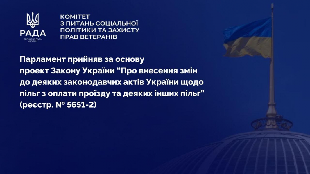 18 червня 2025 року Верховна Рада України схвалила у першому читанні за основу Проект Закону України «Про внесення змін до деяких законодавчих актів України щодо пільг з оплати проїзду та деяких інших пільг» (реєстр. № 5651-2).
