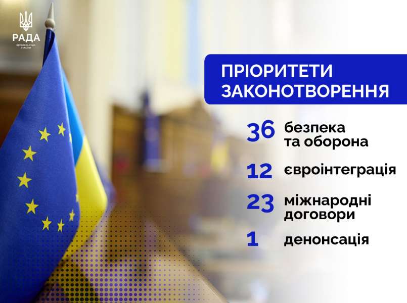 Впродовж 2025 року Верховна Рада України здійснювала законодавчу діяльність відповідно до визначених державних пріоритетів, зокрема у сферах безпеки й оборони, європейської інтеграції та міжнародного співробітництва.