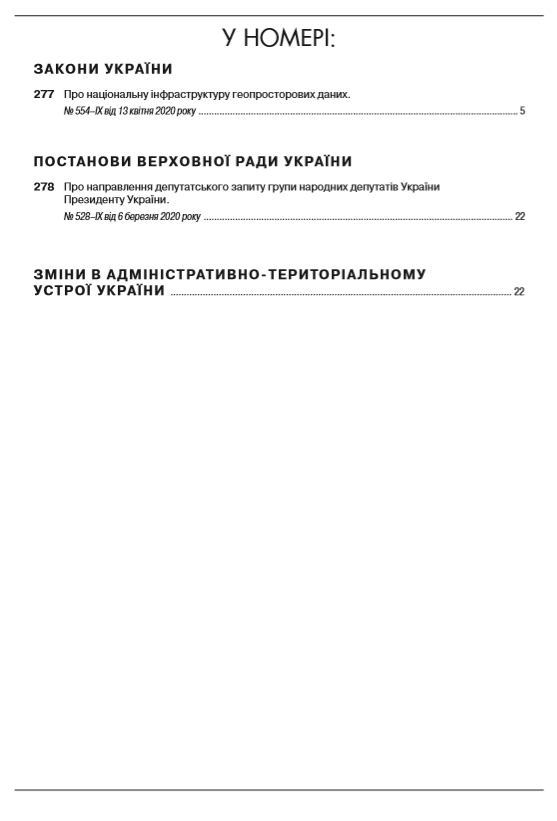 У черговому номері збірника нормативно-правових актів парламентського видавництва «Відомості Верховної Ради України» №37 від 11 вересня 2020 року опубліковано Закон «Про національну інфраструктуру геопросторових даних», прийнятий під час третьої сесії Верховної Ради дев’ятого скликання.