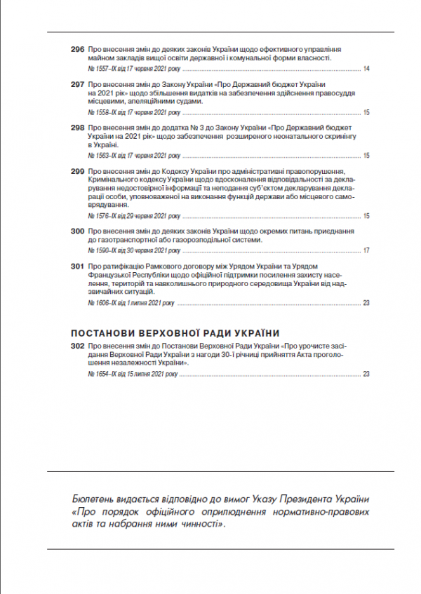 Довідково: Бюлетень «Відомості Верховної Ради України» видається відповідно до вимог Указу Президента України «Про порядок офіційного оприлюднення нормативно-правових актів та набрання ними чинності».