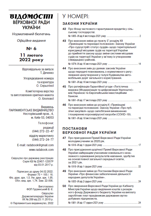 У «Відомостях Верховної Ради України» №6 від 11 січня 2022 року опубліковано