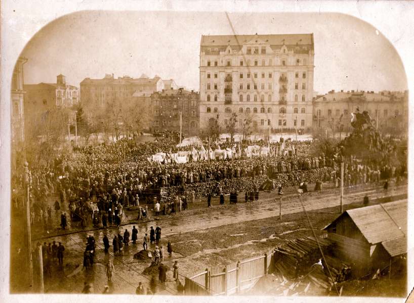 Серед експонатів: документи та фотокартки, присвячені бою під Крутами, газетні видання, поштівки, відозви та звернення органів влади Української Народної Республіки. У виставці представлені десятки унікальних фотокарток. Зокрема, фото будинку Педагогічного музею (вул. Володимирська, 57), де працювала Українська Центральна Рада; дому Грушевських (вул. Паньківська, 9), спаленого військами Михайла Муравйова під час обстрілів Києва на початку лютого 1918-го; членів Української Центральної Ради (Михайла Грушевського, Володимира Винниченка, Миколи Міхновського, художника-графіка Георгія Нарбута); мітингів і маніфестацій, які відбувалися в Києві навесні та влітку 1917-го; унікальні знімки тогочасного Києва, у тому числі будівель, які були втрачені.