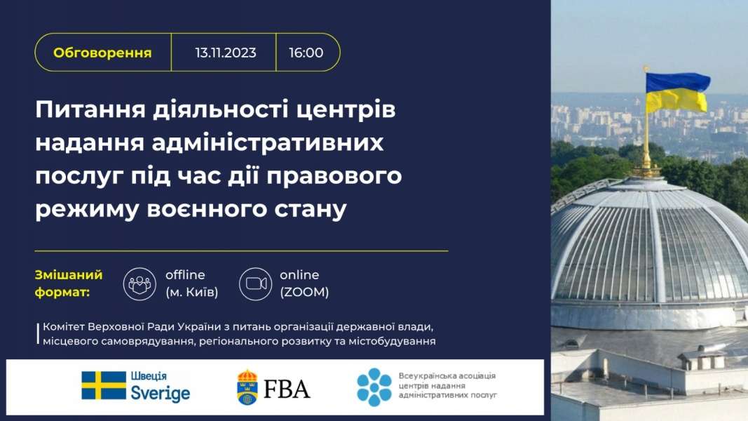 Під час заходу планується обговорити фактичний стан, виклики, проблемні питання та перспективи розвитку системи надання адміністративних послуг в Україні під час дії правового режиму воєнного стану.