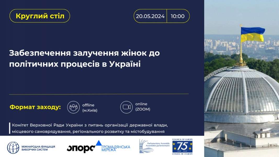 Комітет з питань організації державної влади, місцевого самоврядування, регіонального розвитку та містобудування проведе круглий стіл на тему: «Забезпечення залучення жінок до політичних процесів в Україні».