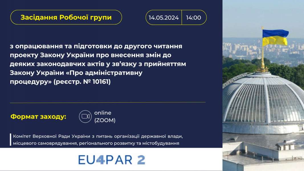 Засідання Робочої групи відбудеться за сприяння та підтримки Проекту ЄС «Підтримка комплексної реформи державного управління в Україні» (EU4PAR2).