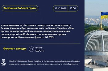 Засідання Робочої групи з опрацювання та підготовки до другого читання проекту Закону України «Про внесення змін до Закону України «Про органи самоорганізації населення» щодо удосконалення порядку організації, діяльності та припинення органу самоорганізації населення»