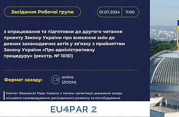 9-те засідання Робочої групи з опрацювання та підготовки до другого читання законопроекту про внесення змін до деяких законодавчих актів у зв’язку з прийняттям Закону України «Про адміністративну процедуру»