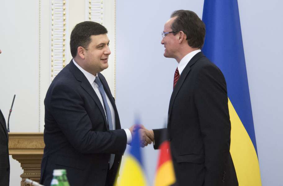 "Про зняття санкцій можемо говорити лише тоді, коли Російська Федерація приборкає свої злодійські наміри і перестане бути агресором", - підкреслив голова В. Гройсман та зауважив, що "роль Німеччини є абсолютно консолідуючою" у даному процесі.