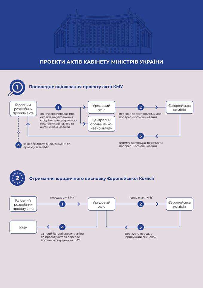 - Урядовий офіс передає проєкт акта КМУ для попереднього оцінювання у Європейську Комісію;