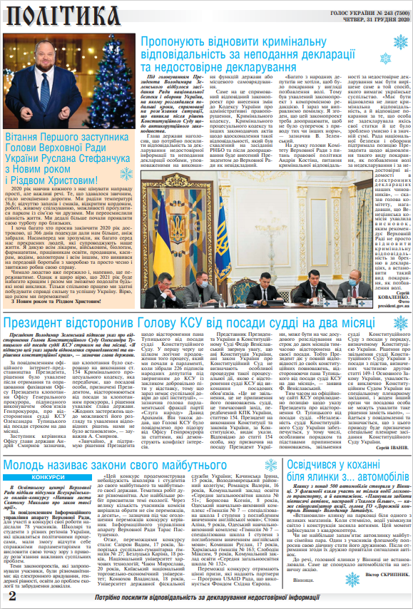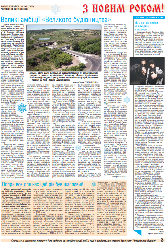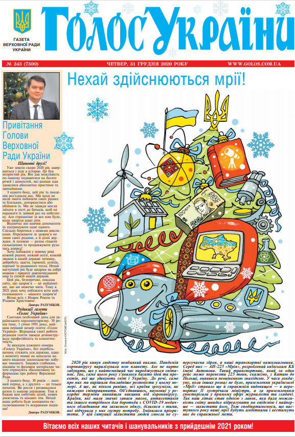 Повний випуск «Голосу України» від 31.12.2020 на сайті http://www.golos.com.ua