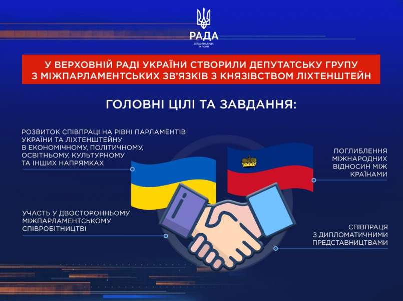 Розвиток співпраці на рівні парламентів України та Ліхтенштейну в економічному, політичному, освітньому, культурному та інших напрямках.