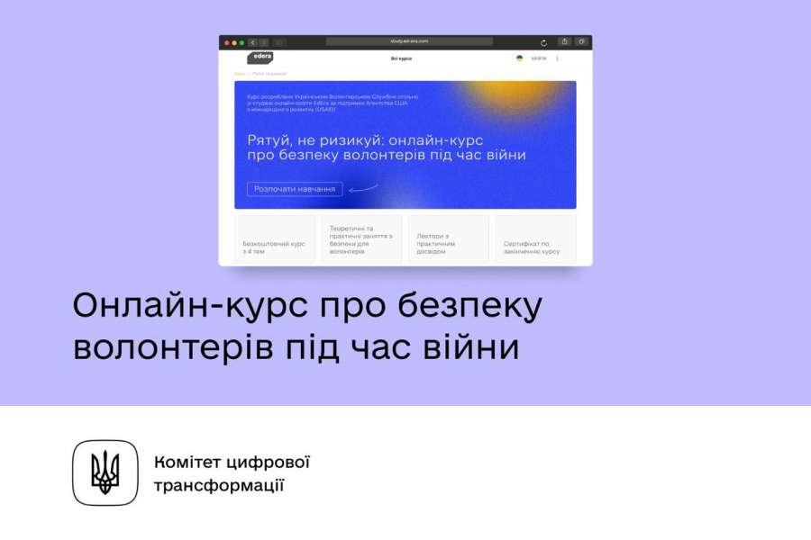 Комітет з питань цифрової трансформації повідомляє, що на платформі EdEra запустили онлайн-курс про фізичну, психологічну та цифрову безпеку для волонтерів. Курс «Рятуй, не ризикуй» стане корисним для всіх, хто вже займається волонтерством або тільки хоче долучитися до волонтерського руху.