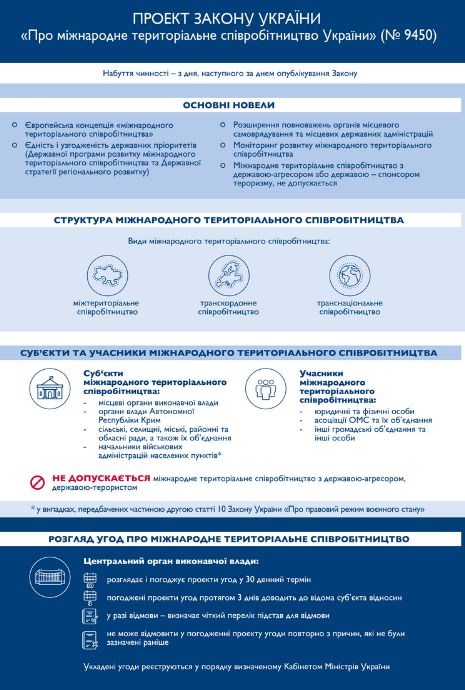 24 квітня 2024 року Верховна Рада України 256 голосами «ЗА» схвалила в другому читанні та в цілому Закон України про міжнародне територіальне співробітництво України (проект з реєстр. № 9450).