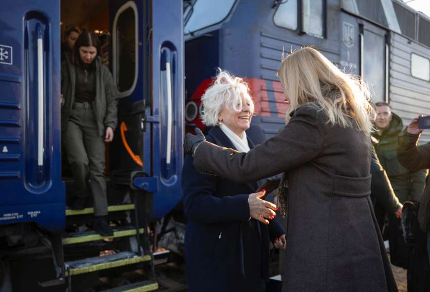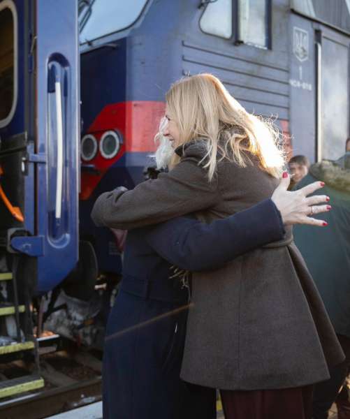 Латвійську делегацію на Київському вокзалі зустріла Віцеспікерка Верховної Ради України Олена Кондратюк.