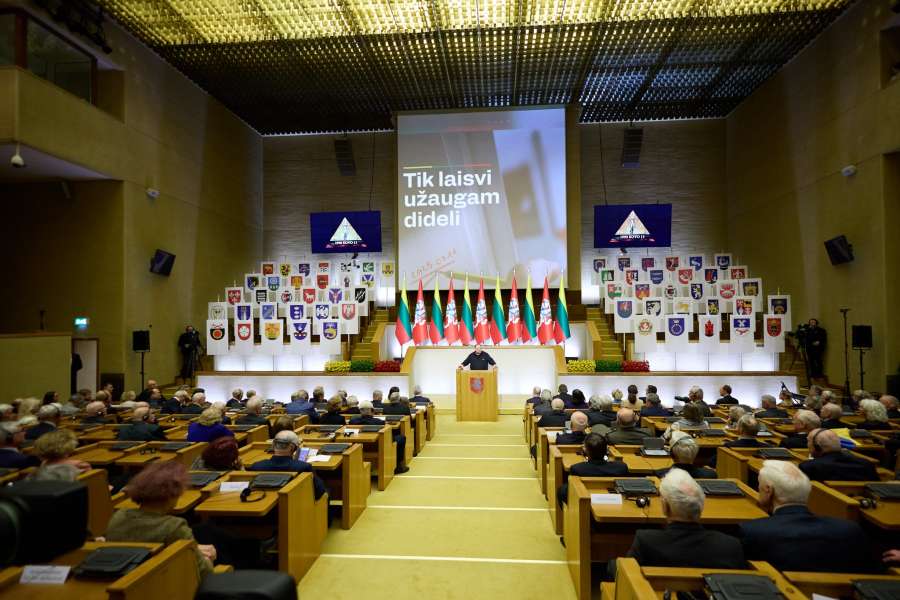 Голова Верховної Ради України Руслан Стефанчук під час урочистого засідання Сеймасу Литовської Республіки виступив із промовою, присвяченою 35-й річниці відновлення незалежності Литви.